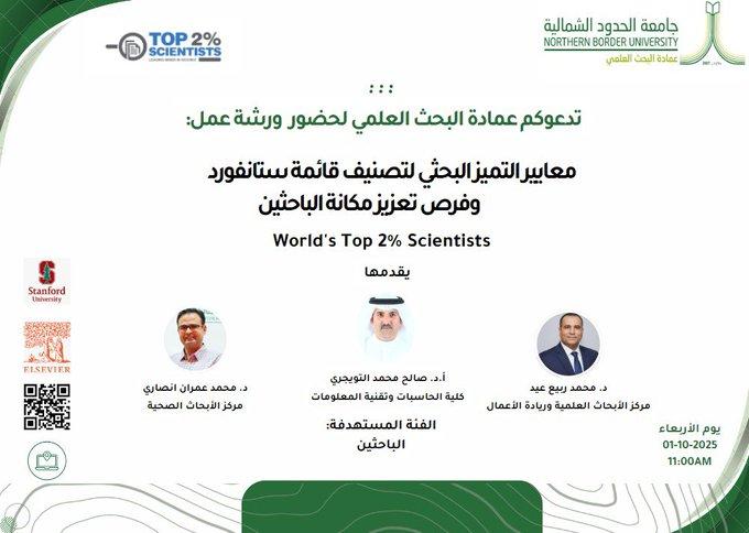 تدعوكم عمادة البحث العلمي لحضور ورشة عمل: النزاهة العلمية والأخلاقيات الطبية والحيوية يقدمها: د. منصور محمد العتيبي، عميد كلية العلوم الطبية التطبيقية د. قمر عفت الشمري، رئيسة قسم علم الأدوية والسموم - كلية الصيدلة ،أمين اللجنة المحلية الدائمة لأخلاقيات الحيوية والطبية الفئة المستهدفة: الباحثين طلبة مرحلة البكالوريوس والدراسات