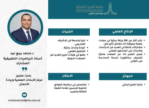 الدكتور محمد ربيع عيد، أستاذ الرياضيات التطبيقية المشارك، ضمن أفضل 2% من العلماء عالميًا (تصنيف ستانفورد) للسنة السادسة على التوالي.